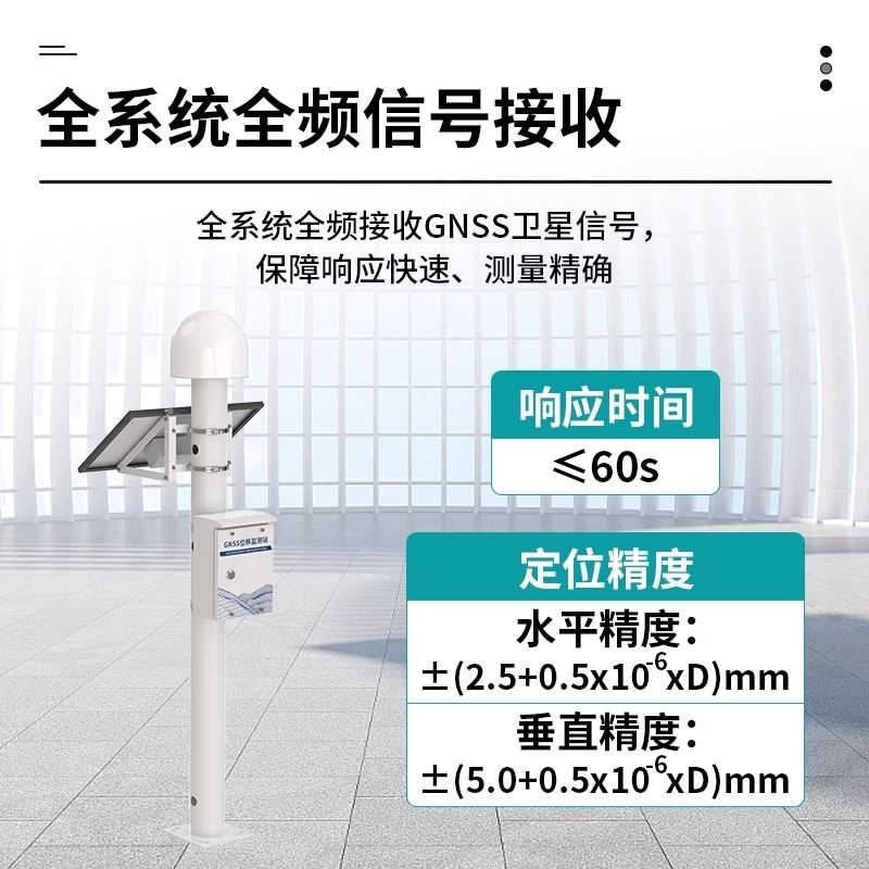 GNSS位移监测系统是一种高精度地质灾害监测设备,适用于滑坡、边坡、桥梁、大坝等场景的形变监测。系统由GNSS天线、主控模块和太阳能供电装置组成,支持4G无线传输与低功耗运行,具备响应快、精度高、安装便捷等优点,可全天候提供三维位移数据,助力灾害预警与安全管理。