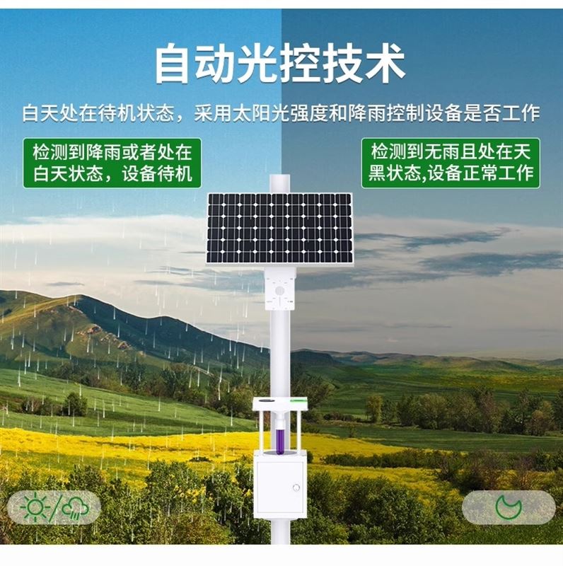 这种智能化的控制方式,既保证了设备在害虫活动高峰期高效工作,又避免了在恶劣天气或非工作时段浪费能源,充分体现了产品的智能化设计理念和节能环保的特点。
